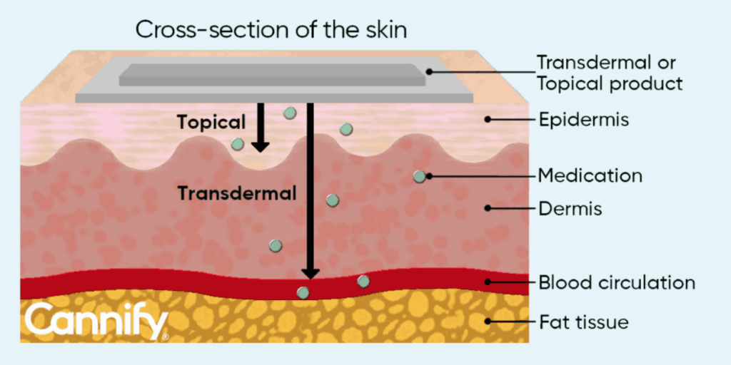 Transdermal Passes through skin into bloodstream Wider pain control Moderate